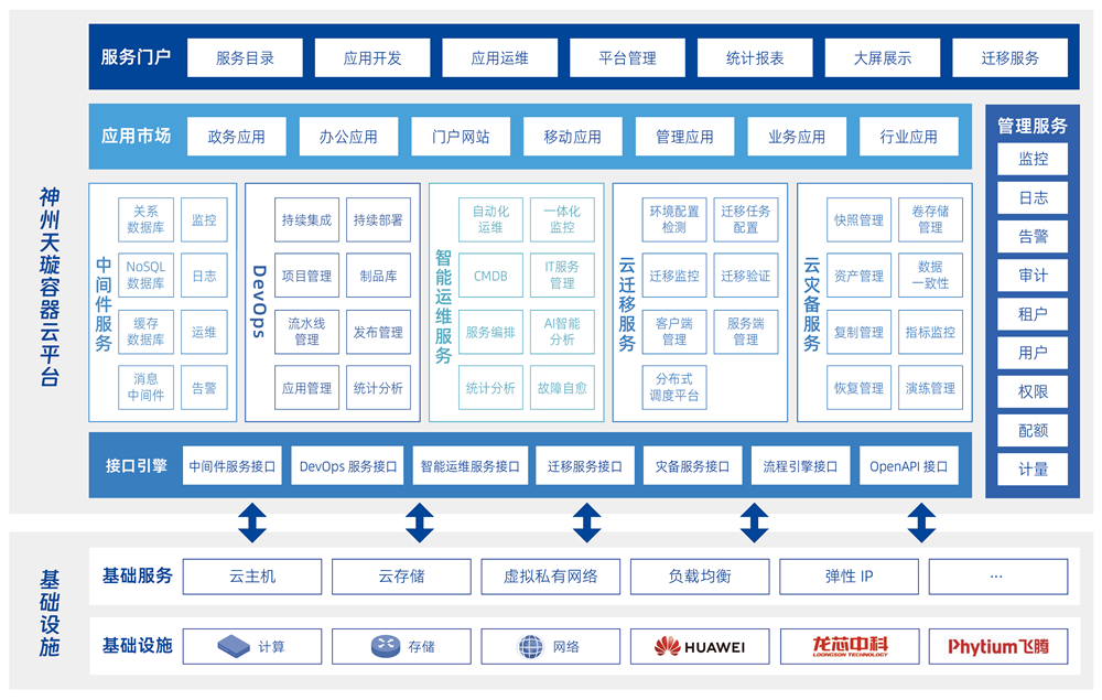全栈自主可控的企业级容器云服务平台,开箱即用的企业级多云管理、业务迁移上云、云上开发测试、运维管理及容灾备份功能特性,模块化按需部署,降低建设成本,随业务需求灵活扩展。